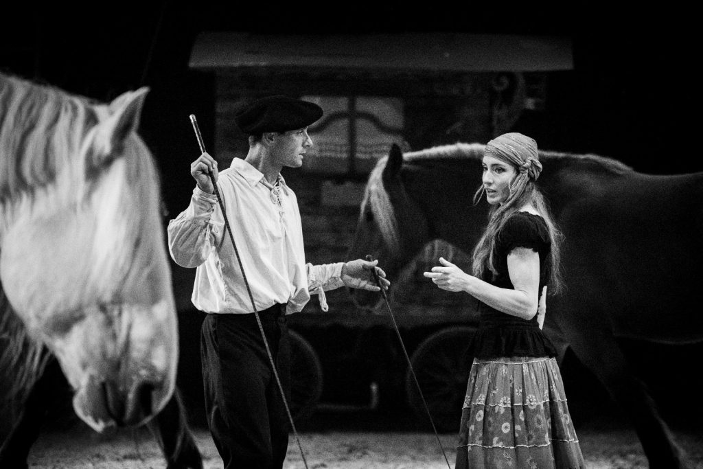 Entre préjugés et incompréhensions, naîtront des situations cocasses et croustillantes. Une troupe composée de musiciens, de comédiens, d’acrobates, de voltigeurs et sans oublier nos fidèles chevaux.